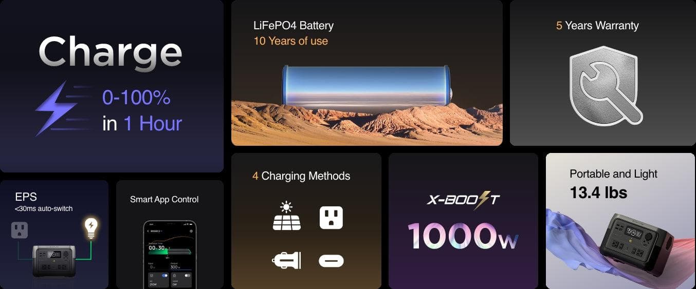 - 512Wh capacity and 500W output (1000W surge)