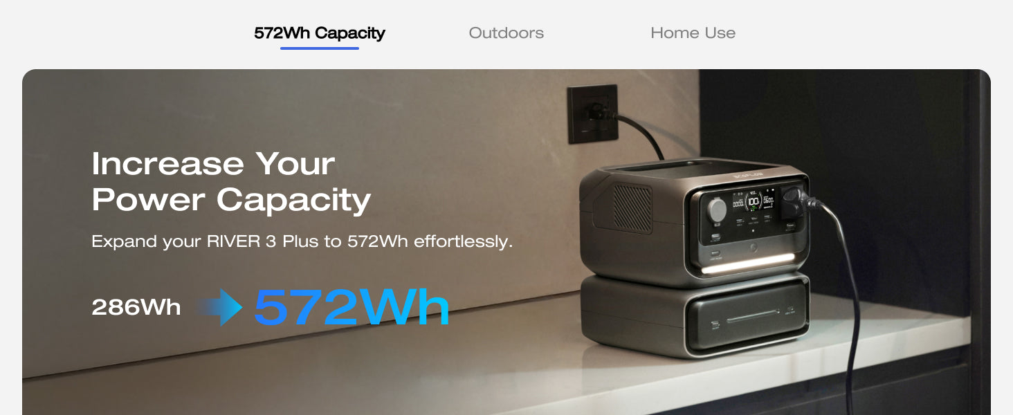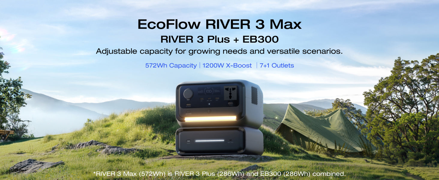 *River 3 Max (572 wh) is a combination of River 3 Plus (286 wh) and EB300 (286 wh).