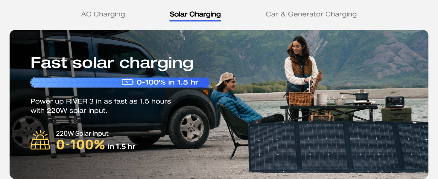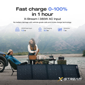 - [Fast, Safe Charging Options]: X-Stream tech recharges from 0-100% in 1 hr with no damage. Use 220W solar input for green, renewable energy in as fast as 1.5 hr, making it an efficient solar generator.