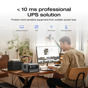 - [Pro-grade UPS Protection]: With a 10 ms auto-switch, RIVER 3 Plus secures sensitive devices from outages. LED, app, and software alerts keep you informed, while automatic data-saving protects PCs/NAS from low battery.